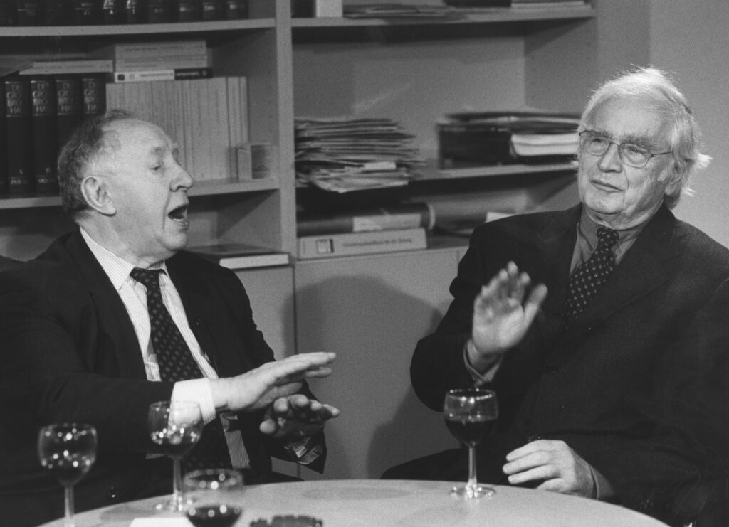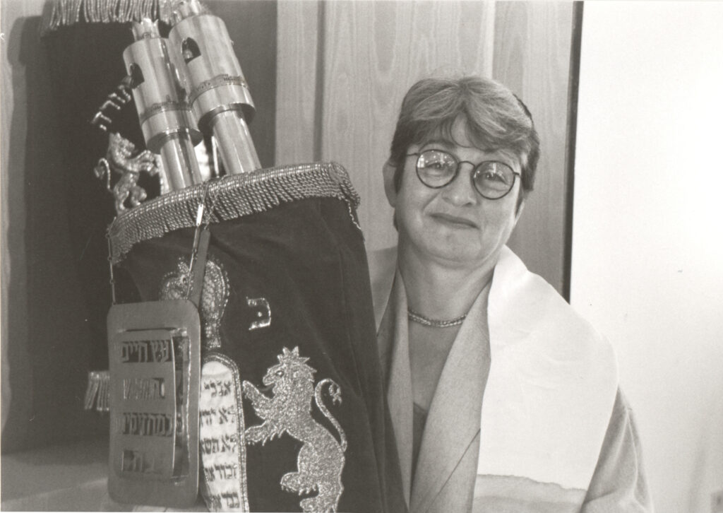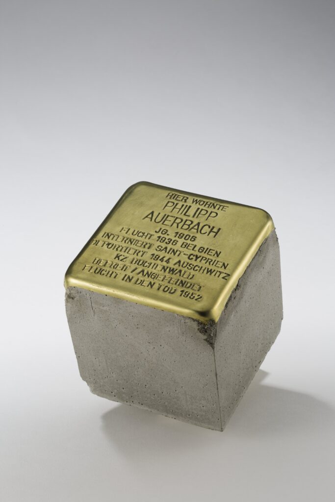 Bilder: Ausstellungsplakat; Aussprache zwischen Ignatz Bubis und Martin Walser, Frankfurt am Main 1998. Foto: Barbara Klemm; Jewrovision 2025, Jachad Köln & Kavanah Aachen, Foto: Gregor Matthias Zielke; Rabbinerin Bea Wyler – die sich stets nur Rabbiner nannte – mit Tallit und Torarolle, o. J. Foto: Angela Weiß; Stolperstein für Philipp Auerbach, Reproduktion, 2025 STIFTUNG – SPUREN – Gunter Demnig, das Original ist im Hamburger Stadtteil Harvestehude verlegt. Foto: Städtisches Museum Brauschweig, Dirk Scherer