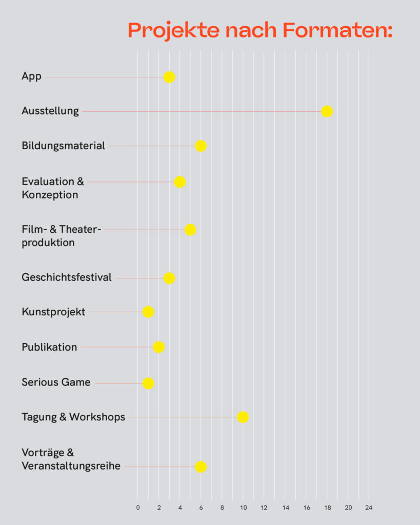 Im Jahr 2024 haben wir mit 44 Partnerinnen und Partnern der historisch-politischen und kulturellen Bildung 35 Kooperationen mit einem Gesamtförderbetrag von 916.710,25 EUR umgesetzt.