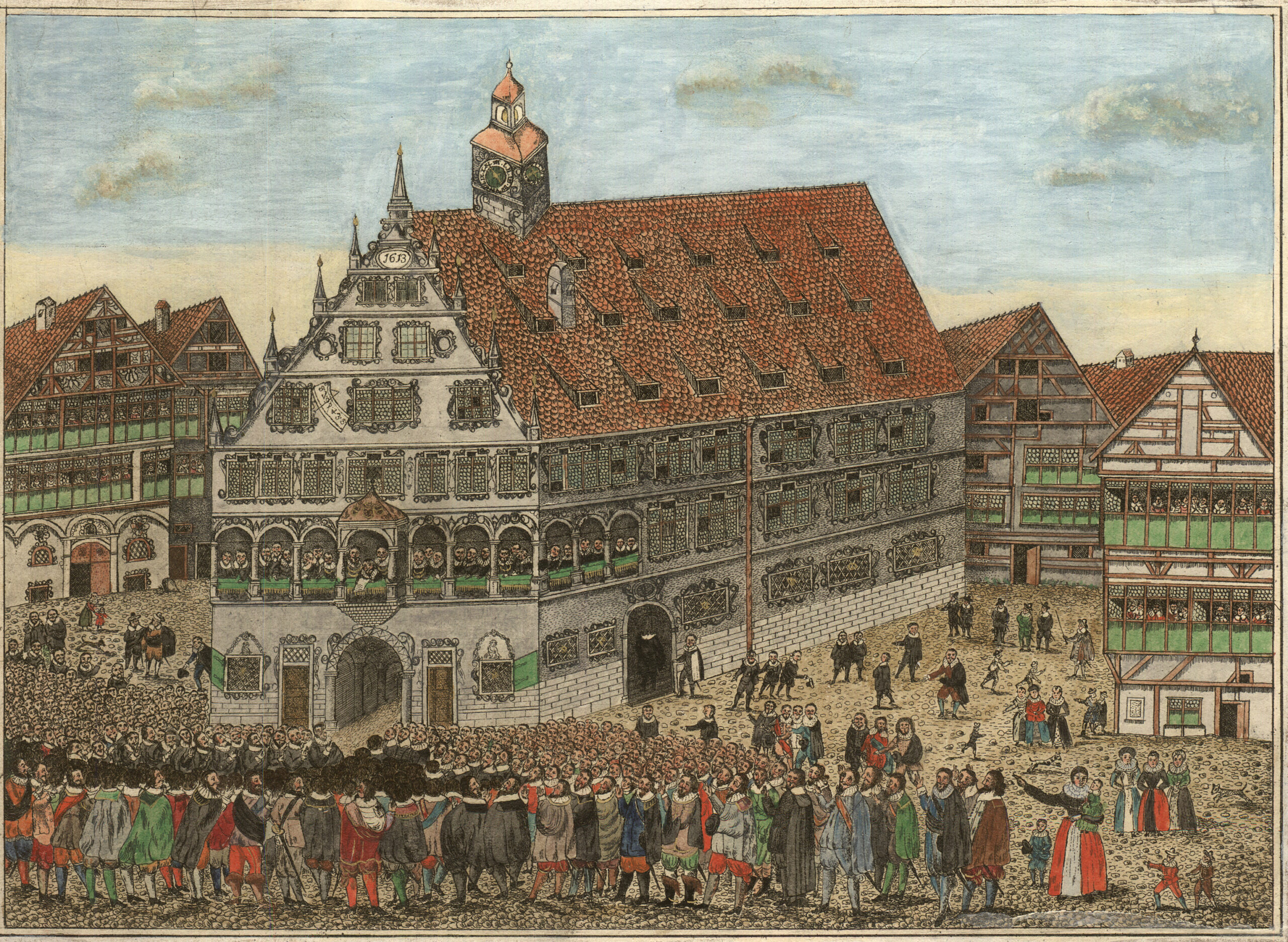 Als der Luginsland und das Schwörhäuslein 1612 wegen Baufälligkeit abgebrochen wurden, entschieden sich die Ulmer bewusst dafür, den Schwörakt nicht zu verlegen. Stattdessen errichteten sie zwischen 1612 und 1618 das heutige Schwörhaus – einen europaweit einzigartigen Bau, der eigens für den Schwörakt geschaffen wurde. Damit bekräftigte die Reichsstadt ihre politische Identität und ihre Tradition öffentlicher Rechenschaft. Zugleich hatte sich die politische Bedeutung des Schwöraktes bereits gewandelt: Nach der Entmachtung der Zünfte durch Kaiser Karl V. im Jahr 1548 war der Schwörtag zeitweise abgeschafft worden. Erst zehn Jahre später erhielt die Ulmer Bevölkerung ihn zurück – nun allerdings unter veränderten Vorzeichen, da die patrizische Führung wieder dominierte und die Bürgerschaft der Obrigkeit Gehorsam schwor.