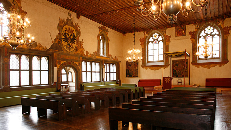 Der im Mittelalter begründete Teil des Rathauses wird heute repräsentativ und museal genutzt. Die Räume, die sowohl von der Freien Reichsstadt als auch vom Reichstag zeugen, können im Rahmen von Führungen besucht werden. Hier finden sich die Führungszeiten.